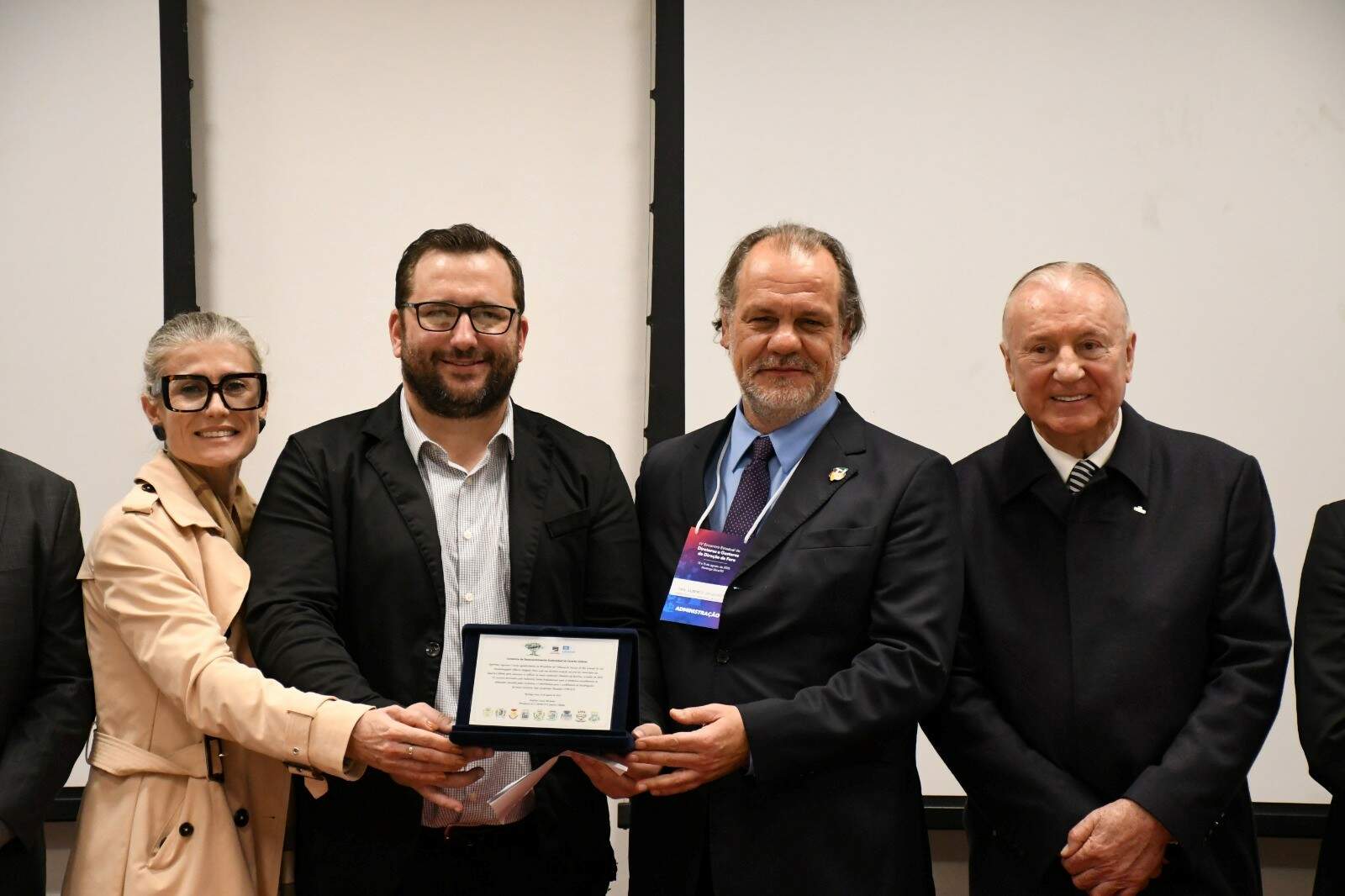 O presidente do Tribunal de Justiça do Rio Grande do Sul (TJRS), desembargador Alberto Delgado Neto, recebeu, nesta quinta-feira (14), dos prefeitos integrantes do Consórcio de Desenvolvimento Sustentável da Quarta Colônia (CONDESUS) uma homenagem durante o IV Encontro Estadual de Diretores e Gestores de Direção de Foros, que está ocorrendo em Restinga Sêca, na Região Central do Rio Grande do Sul.