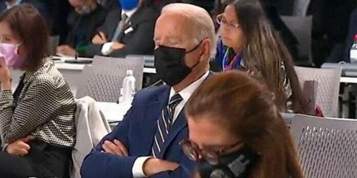 O presidente dos Estados Unidos, Joe Biden, foi flagrado nesta segunda-feira (01) dormindo durante um discurso na abertura da COP26, cúpula da ONU (Organização das Nações Unidas) que debate as mudanças climáticas, em Glasgow, na Escócia.