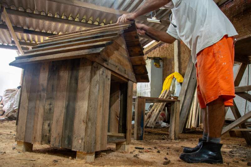 Em frente mobilizada pela Polícia Penal do Rio Grande do Sul, apenados da Pecan I (Penitenciária Estadual de Canoas I) produzem casinhas para abrigar cachorros resgatados. Até o momento, já foram entregues 25 unidades fabricadas com mão de obra de seis presidiários, que são beneficiados com a remição da pena pelo trabalho realizado.