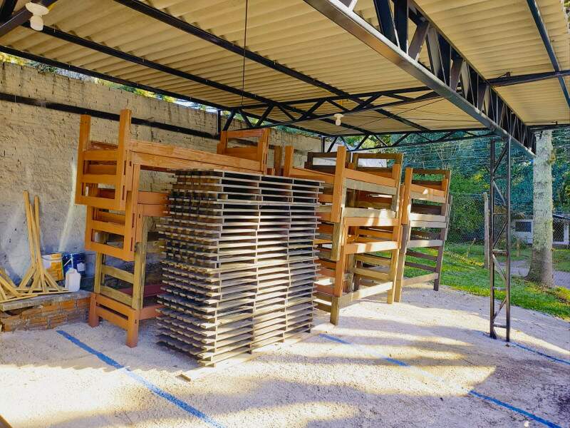 Em Iraí, a meta é produzir 100 camas. As primeiras unidades foram entregues na quinta-feira (16) a abrigos de Roca Sales. O transporte foi realizado por empresários que apoiam o projeto. Ao todo, quatro detentos atuam na oficina. O trabalho possibilita a remição da pena, conforme disposto na legislação.