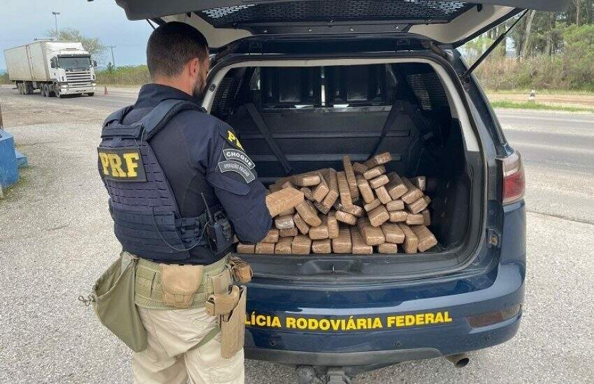 Na tarde desta quinta-feira (29), a PRF (Policia Rodoviária Federal) prendeu um casal e apreendeu um carro com 70 quilos de maconha que estavam no porta-malas. O casal estava com os dois filhos, de um e três anos. A ação ocorreu na BR-293, em Bagé, na Região da Campanha.