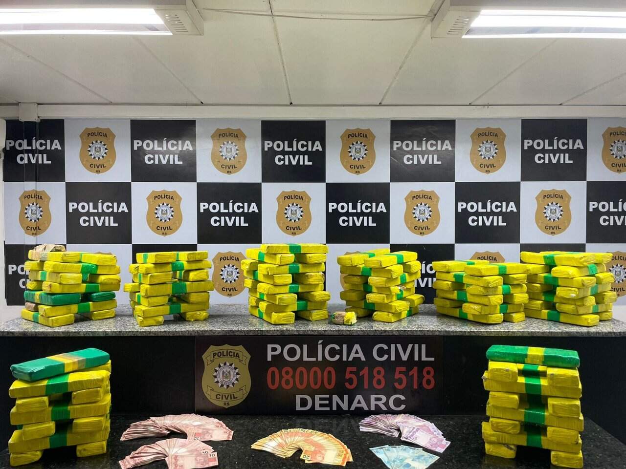 Em seguida, os policiais foram até uma residência no bairro Vila Nova, na Zona Sul, perto do local onde, há algumas semanas, um laboratório de refino de cocaína havia sido descoberto. Na casa, os agentes acharam mais tijolos de maconha, alguns armazenados no interior de malas, prontos para distribuição.