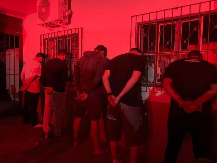 Os policiais observaram que um indivíduo agia de forma suspeita. O homem chegou ao local sozinho, estacionou e desceu com uma maleta. Na sequência, se dirigiu para outro veículo, onde estavam outras quatro pessoas. O grupo em questão é, justamente, o que foi preso horas depois.