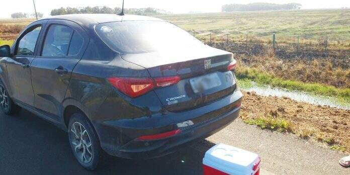 Os suspeitos, um homem, de 34 anos, e uma mulher, de 39 anos, foram detidos pelo efetivo do 8º BPM nesta segunda-feira no km 206 da RST 101, na localidade de Cacimbas, em Mostardas. Eles estavam em um Fiat Cronos, com placas de Içara, em Santa Catarina, que havia sido furtado no dia 20 de outubro.