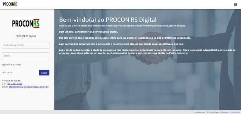 Trata-se do portal Procon RS Digital, que pode ser acessado por meio do endereço https://proconrs.modria.com/. O site é baseado na tecnologia ODR (online dispute resolution), que visa dar agilidade na interação entre as partes envolvidas.