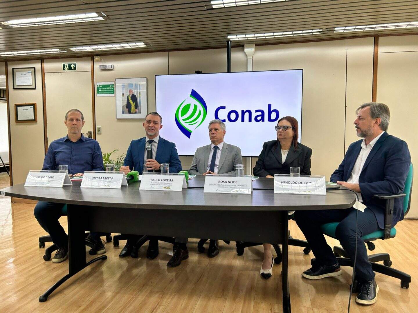 O anúncio da ação foi feito nesta quinta-feira (07), durante coletiva de imprensa que contou com a participação do ministro do Desenvolvimento Agrário, Paulo Teixeira; do presidente da Conab, Edegar Pretto; da diretora Administrativa, Financeira e de Fiscalização, Rosa Neide; e dos diretores de Política Agrícola e Informações, Sílvio Porto, e de Operações e Abastecimento, Arnoldo de Campos.