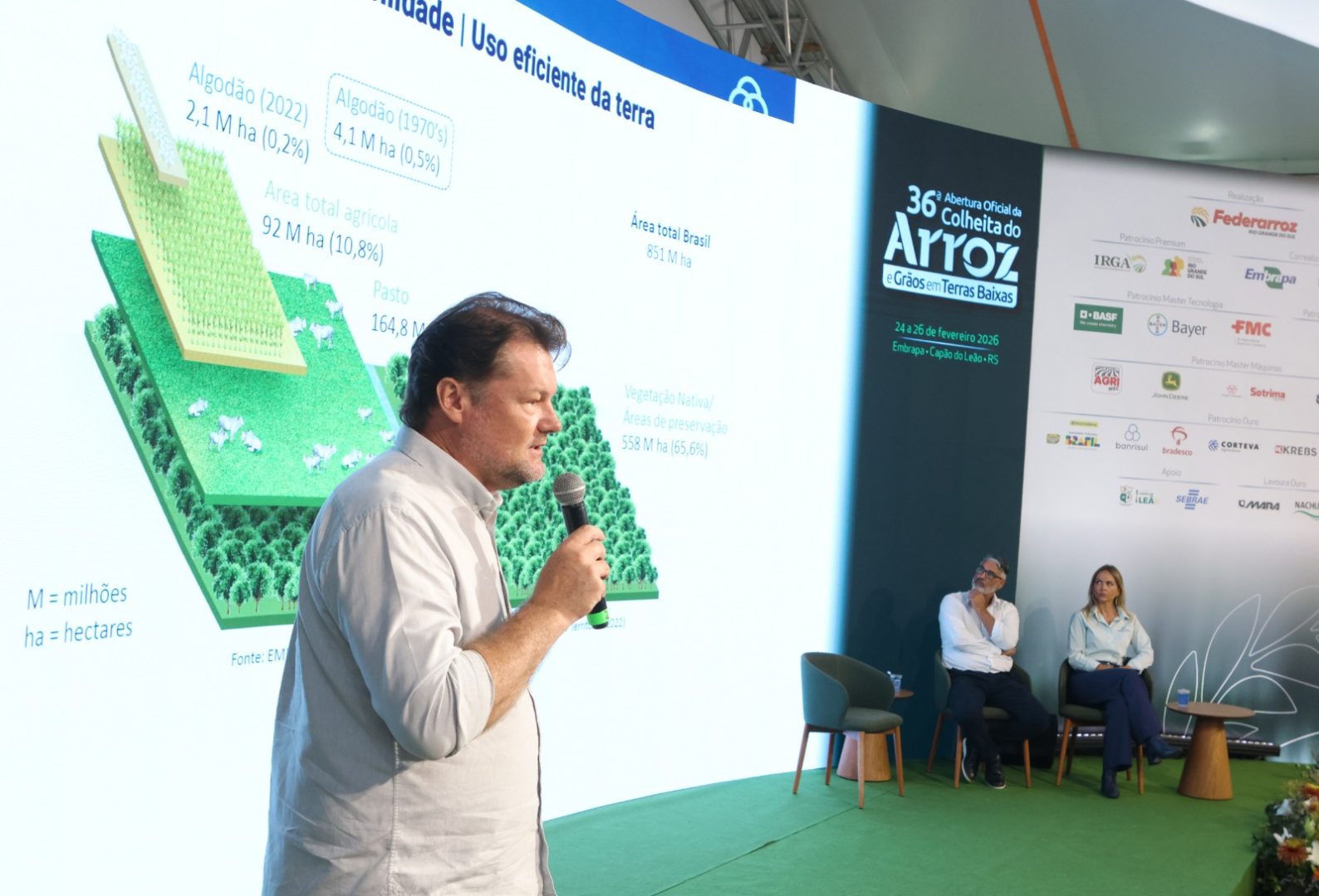 Na 36ª Abertura Oficial da Colheita do Arroz e Grãos em Terras Baixas, em Capão do Leão, os produtores não foram apenas ouvintes: subiram ao palco para mostrar que a transformação do campo começa dentro da porteira. O painel “Produtores em Foco: Experiências que Geram Valor” trouxe exemplos que desafiam a lógica tradicional e apontam caminhos para 2026.