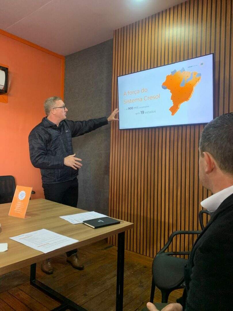 O presidente da Cresol Confederação, Cledir Assisio Magri, foi o anfitrião do encontro e apresentou aos convidados o histórico do sistema Cresol, conquistas e expansão projetada para os próximos anos, com expectativa de 1500 agências de relacionamento até 2030.
