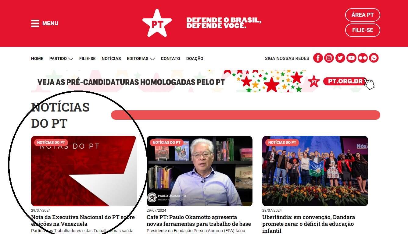 “O PT saúda o povo venezuelano pelo processo eleitoral ocorrido no domingo, dia 28 de julho de 2024, em uma jornada pacífica, democrática e soberana. Temos a certeza de que o Conselho Nacional Eleitoral, que apontou a vitória do presidente Nicolás Maduro, dará tratamento respeitoso para todos os recursos que receba, nos prazos e nos termos previstos na Constituição da República Bolivariana da Venezuela”, disse a Executiva Nacional do partido, em comunicado.