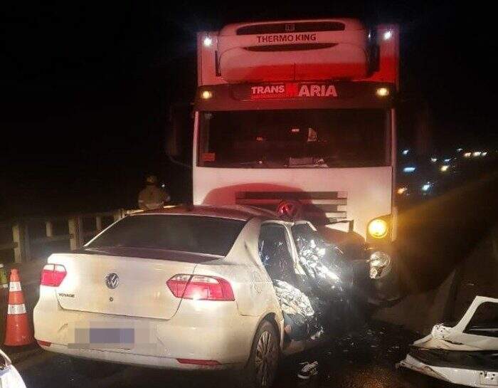 Segundo a PRF (Polícia Rodoviária Federal), um Voyage, com placas de Chapecó (SC), colidiu contra um caminhão, emplacado em Garibaldi.
