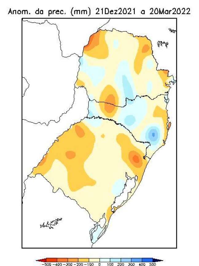 Esse fato está ligado com a estiagem que o Sul do País, mas sobretudo a estiagem que o Rio Grande do Sul vem enfrentando desde a primavera passada. No mapa abaixo é possível observar que durante o verão choveu cerca de 200 a 300 mm abaixo do que normalmente chove em áreas da Fronteira Oeste, Centro e Nordeste gaúcho. Esse verão foi marcado por recordes de calor, como o caso de Uruguaiana, com seus 42,9 °C em fevereiro deste ano.