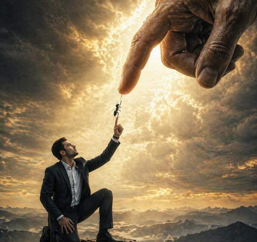 Agora, imagine uma formiga mais “intelectualizada” tentando questionar sua existência, suas intenções ou a estrutura daquele universo em que vive. Que diferença real isso faria para ela?