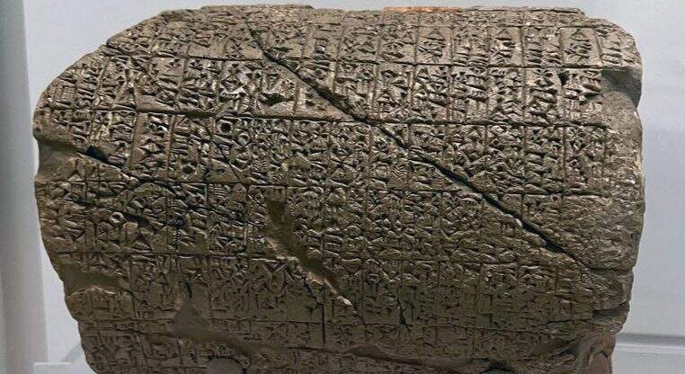 A narrativa do artefato envolve o mito sumério da criação e problemas com o fornecimento de alimentos em Nipur, capital religiosa original da Babilônia e local de adoração de Enlil, governante do cosmos. Na segunda coluna do texto, uma divindade masculina, possivelmente Enlil, tem relações sexuais com a deusa mãe Ninhursag, irmã de Enlil, e depois a beija. Em meio a essa brincadeira divina, a divindade masculina planta a semente de “sete pares de deuses” no útero dela.