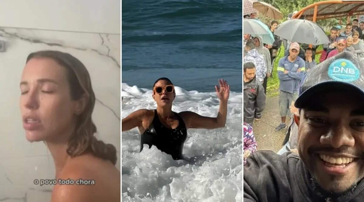Campeão do “BBB 24”, Davi recebeu críticas ao fazer lives filmando vítimas da tragédia. Ele tentou entrevistar um idoso recém-resgatado que tinha a água até a cintura. “Como o senhor se sente nesse momento de ver toda essa situação acontecer?”, perguntou o ex-BBB, sem ouvir respostas.