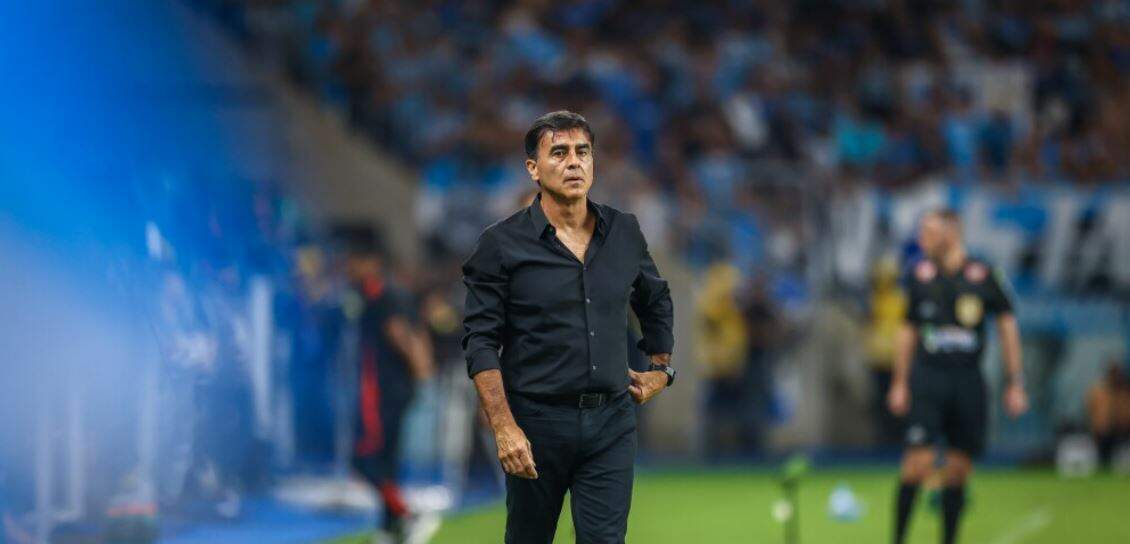 O técnico Gustavo Quinteros reconheceu a atuação abaixo do esperado do Grêmio no clássico Grenal 444 disputado na noite desse sábado (8) na Arena, em Porto Alegre. Após o empate em 1 a 1, o treinador analisou o desempenho do Tricolor, e elogiou, por diversas vezes, a equipe de Roger Machado.