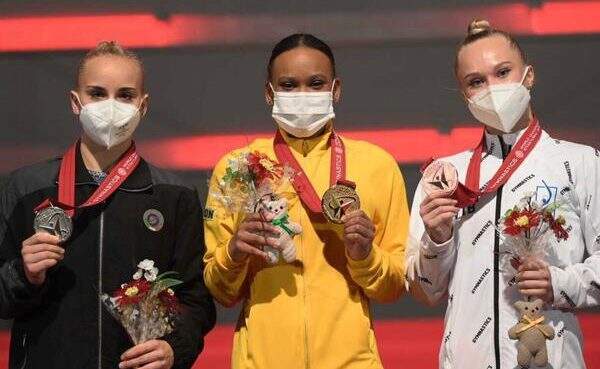 A ginasta Rebeca Andrade, de 22 anos, voltou a brilhar na manhã deste sábado (23) ao conquistar o título de campeã mundial de salto em Kitakyushu, no Japão. Além de receber a medalha de ouro, Rebeca também ganhou prata na disputa das barras assimétricas.