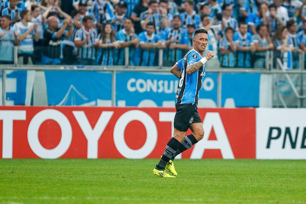 Barrios fez um hat-trick no jogo de volta contra o Guaraní-PAR (Foto: Lucas Uebel/Grêmio)