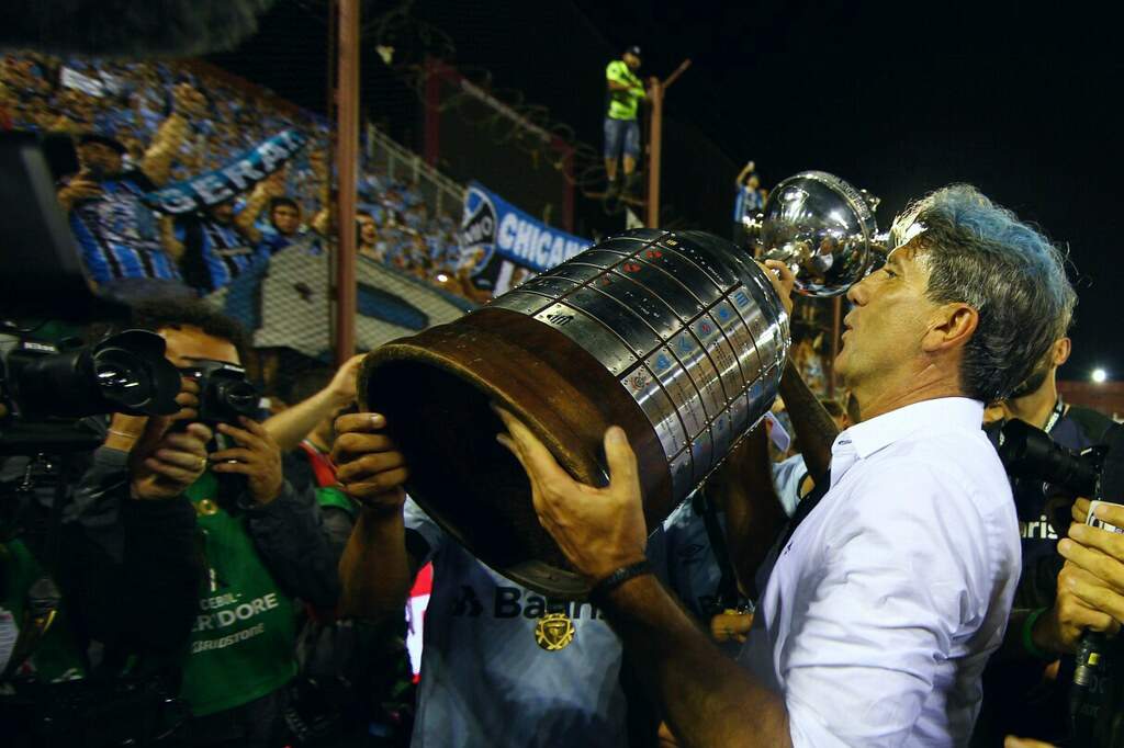 Renato beija a taça do Tri da América (Foto: Lucas Uebel/Grêmio)