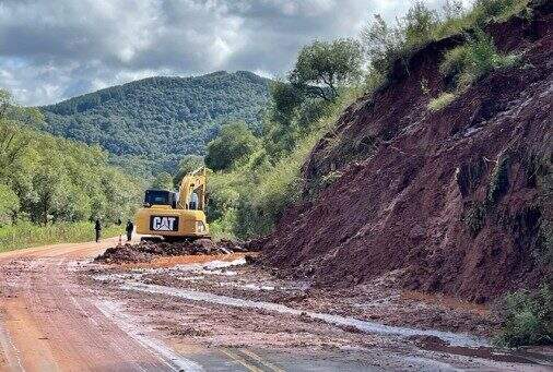 – ERS-431: no km 26, em São Valentim do Sul, houve deslizamento de parte da pista. O fluxo está em meia pista.