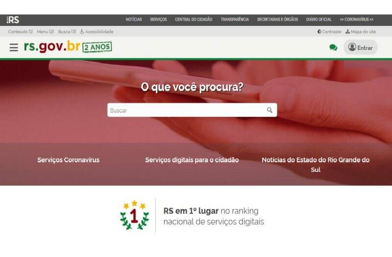 O portal rs.gov.br, um dos finalistas, concentra atualmente 487 serviços estaduais, sendo 63% deles digitais. A meta é chegar a 100% até o fim de 2022. Além das funcionalidades referentes ao Executivo gaúcho, também é possível acessar serviços de outras esferas. O site, aliado aos demais canais digitais de órgãos estaduais, ultrapassa a marca de 4,6 milhões de acessos mensais, em média.