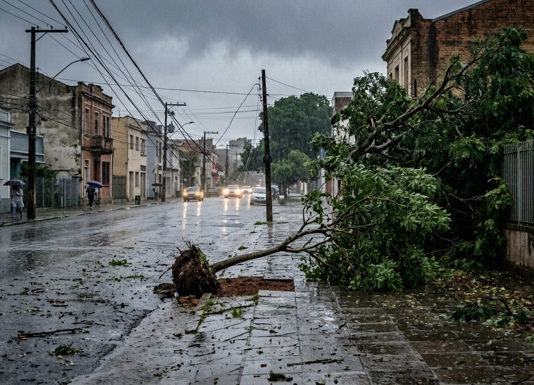 Nessa segunda-feira (23), uma tempestade com vendaval atingiu a Capital gaúcha no meio da tarde, causando transtornos como alagamentos, quedas de árvores e falta de luz. Antes da chuva, a cidade chegou a registrar 33ºC.