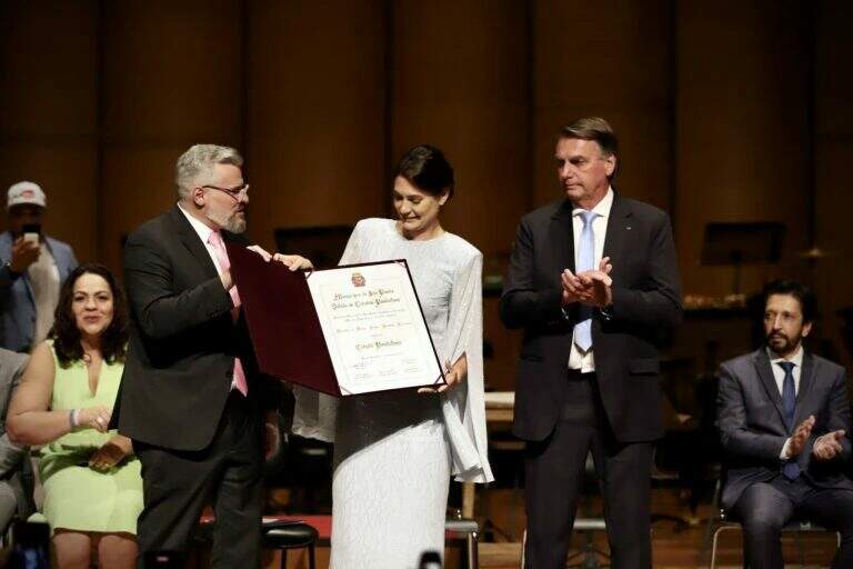 A ex-primeira-dama e presidente do PL Mulher, Michelle Bolsonaro, recebeu o título de cidadã paulistana na segunda-feira (25), no Theatro Municipal, situado no centro da cidade de São Paulo.