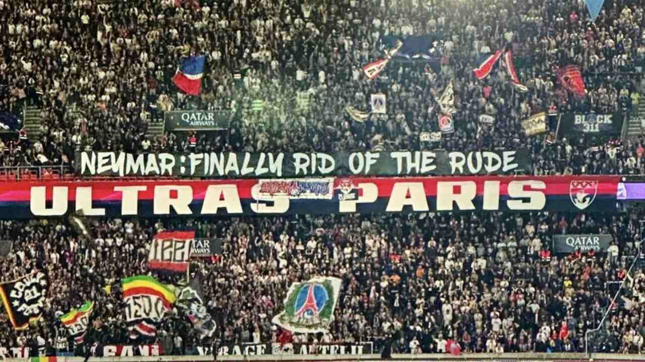 Torcedores do Paris Saint-Germain celebraram a saída de Neymar do clube e exibiram uma faixa com uma indireta para o jogador durante a vitória de 3 a 1 sobre o Lens, no Parque dos Príncipes. “Neymar: Finalmente nos livramos do malcriado”, dizia a mensagem, em inglês, colocada atrás de um dos gols, em meio aos ultras, o principal grupo de torcida organizada do time parisiense.