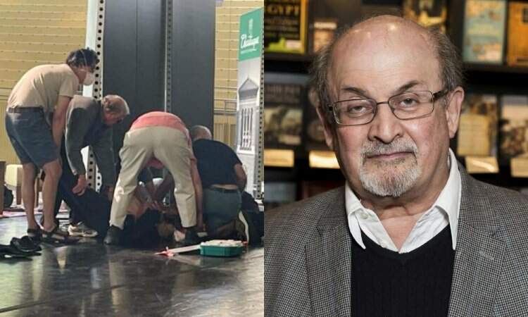 Rushdie foi levado do local de helicóptero por socorristas. A pessoa que estava entrevistando o escritor sofreu um leve ferimento na cabeça.