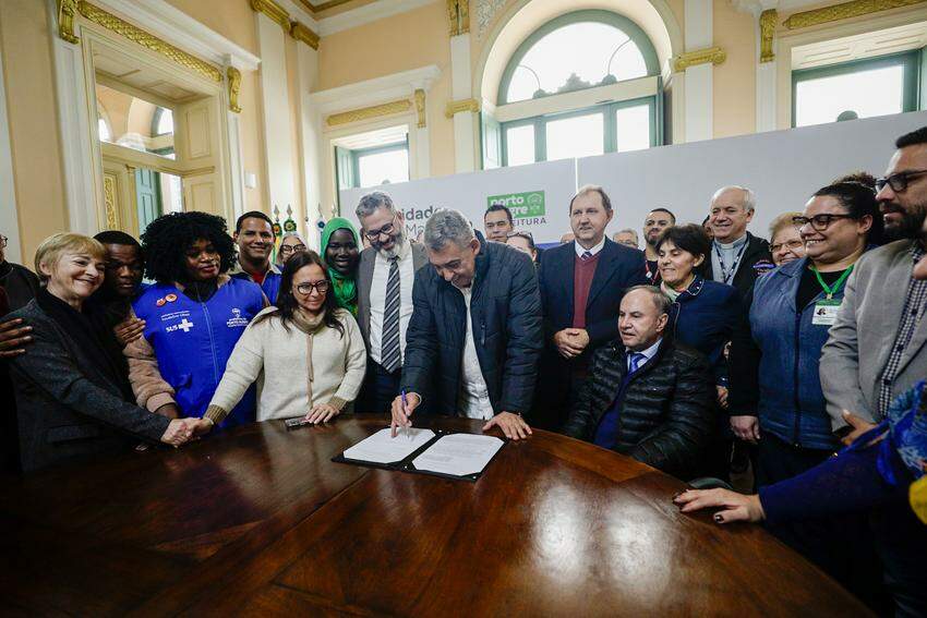 O prefeito Sebastião Melo sancionou na manhã desta segunda-feira (10), em ato no Paço Municipal, a Lei 13.527 que institui a Política Municipal para Migrantes, Refugiados, Apátridas, Asilados Políticos e Vítimas, em situação migratória interna ou externa, de redução à condição análoga à de escravo e/ou de tráfico humano.