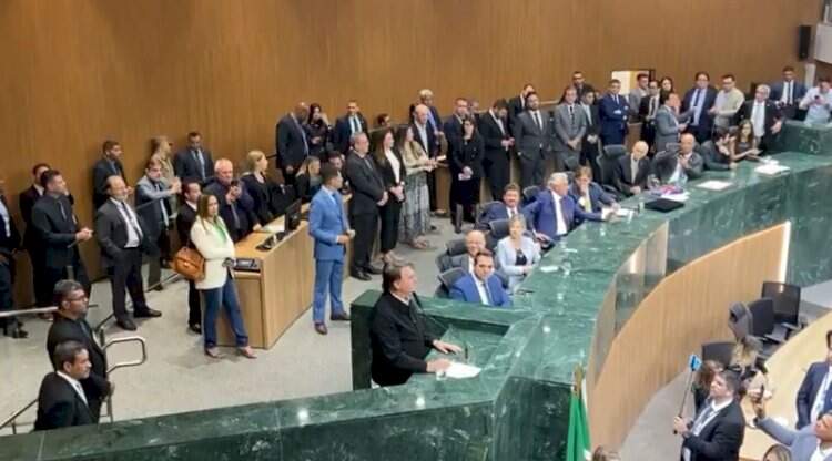 O ex-presidente foi homenageado na Assembleia Legislativa de Goiás (Alego), onde recebeu o título de cidadão goiano, no plenário da Casa. A homenagem foi dividida em dois momentos, uma no Plenário e outra em um auditório repleto de apoiadores e que começou com um culto. Bolsonaro foi cumprimentado por autoridades e recebeu honras ao mérito.