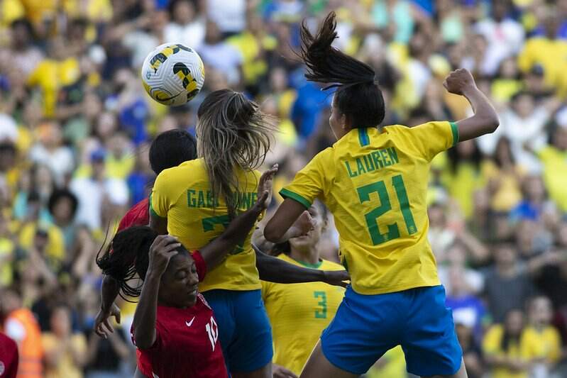 O primeiro tempo começou nervoso para o Brasil, com chegadas perigosas do ataque canadense, mas a partir dos 30 a seleção tomou conta da partida até abrir o placar aos 40 minutos, com Kerolin roubando a bola no meio campo. A camisa 10 disparou com a bola, se desvencilhar da marcação e esperou o momento para dar de presente para Bia Zaneratto desferir um chute cruzado fulminante de esquerda.