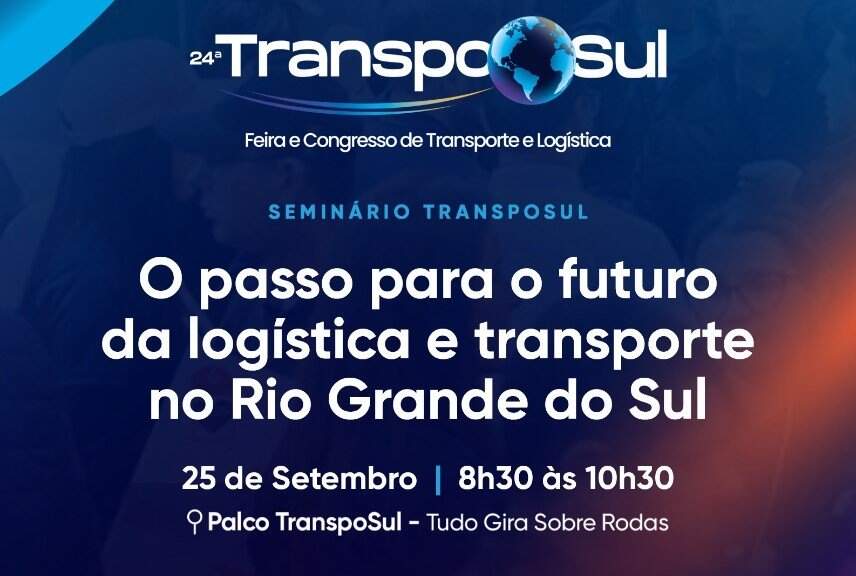 A 24ª TranspoSul – Feira e Congresso de Transporte e Logística recebe nesta quinta-feira (25) o Seminário TranspoSul “O passo para o futuro da logística e transporte no Rio Grande do Sul”, iniciativa organizada pelo Governo do Estado, patrocinador Master da feira. O encontro será realizado das 8h30 às 10h30, no Palco TranspoSul – Tudo Gira Sobre Rodas, reunindo autoridades públicas e representantes dos principais setores produtivos gaúchos.