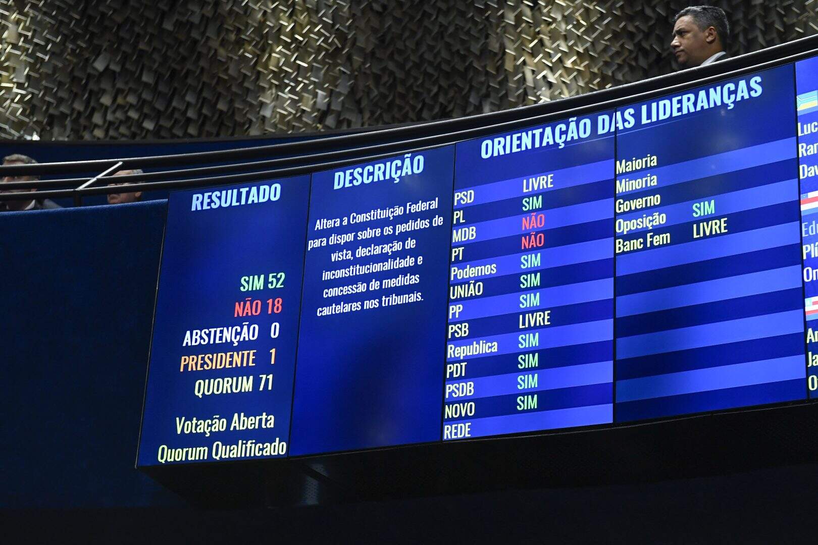 O Senado aprovou nessa quarta-feira (22) a proposta de emenda à Constituição (PEC) que limita decisões individuais de ministros do Supremo Tribunal Federal (STF).