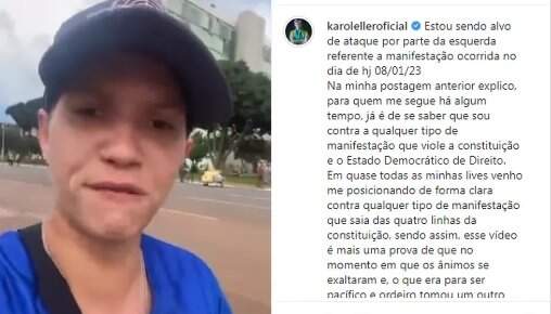Em uma rede social, Caroline Eller publicou um vídeo na Esplanada. Nele, ela caminha no sentido oposto aos atos e cumprimenta outros extremistas. Na legenda, ela diz ser contra atos que violem a Constituição e o Estado Democrático de Direito.