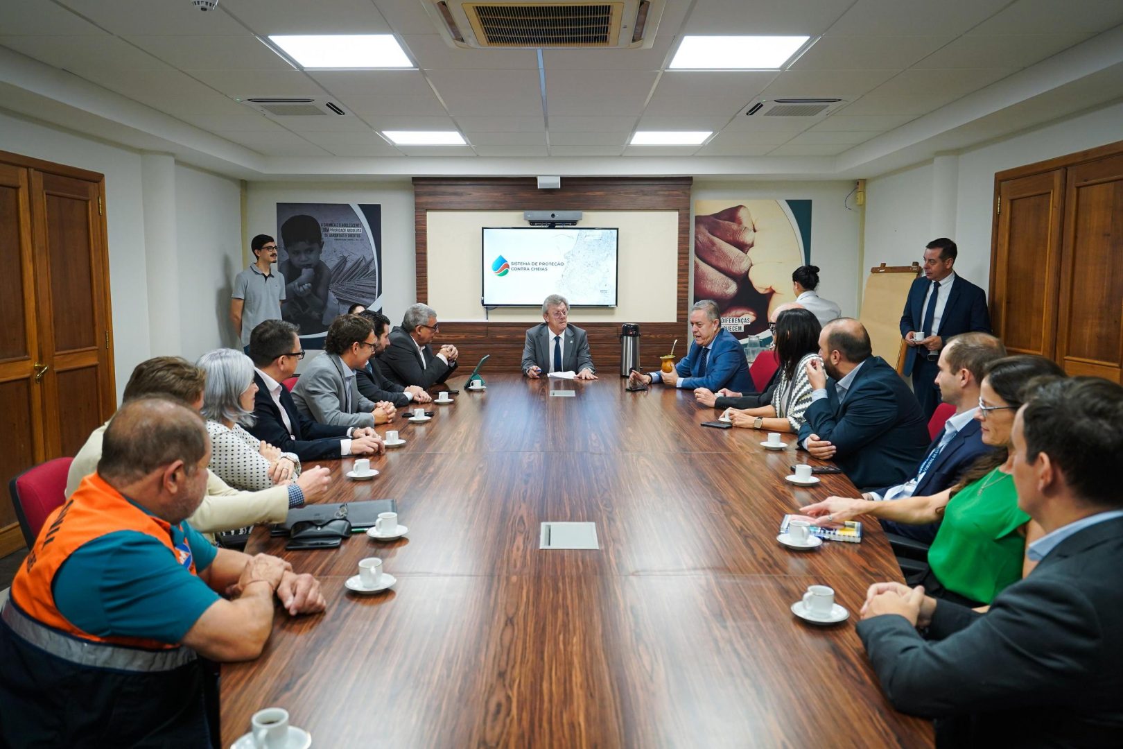 No encontro, também estiveram presentes o procurador-geral do Município, Jhonny Prado, o secretário Geral de Governo, André Coronel, o coordenador da Defesa Civil, Hélio Oliveira, o diretor de Proteção contra Cheias e Drenagem do Dmae, Alex Zanoteli, o diretor de regulação e Governança Corporativa do Dmae, Carlos Eduardo Silveira, a secretária da Fazenda, Ana Pellini, e o líder da proposta de proteção contra cheias da empresa Rhama Analysis, professor Carlos Eduardo Tucci.