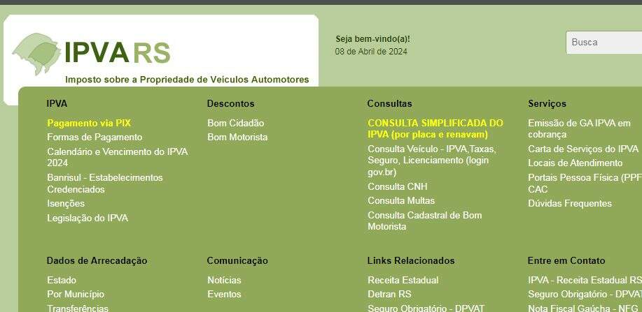 O acesso a serviços disponíveis no site do IPVA RS passou a ocorrer somente por meio do login gov.br, o mesmo utilizado para acessar a plataforma do governo federal.