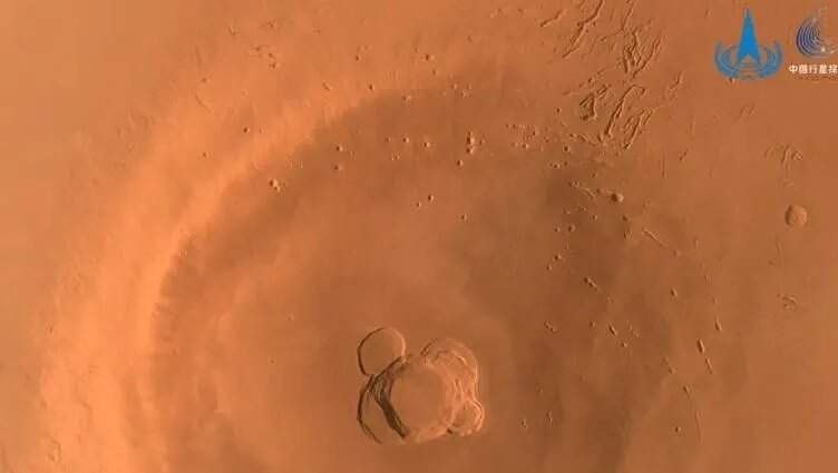 As imagens foram tiradas pelo orbitador da sonda, que circulou Marte 1.344 vezes, capturando imagens do planeta de todos os ângulos, enquanto o rover explorava a superfície, disse a CNSA.
