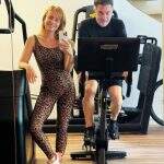 Angélica usa roupa de oncinha em treino com Luciano Huck em casa