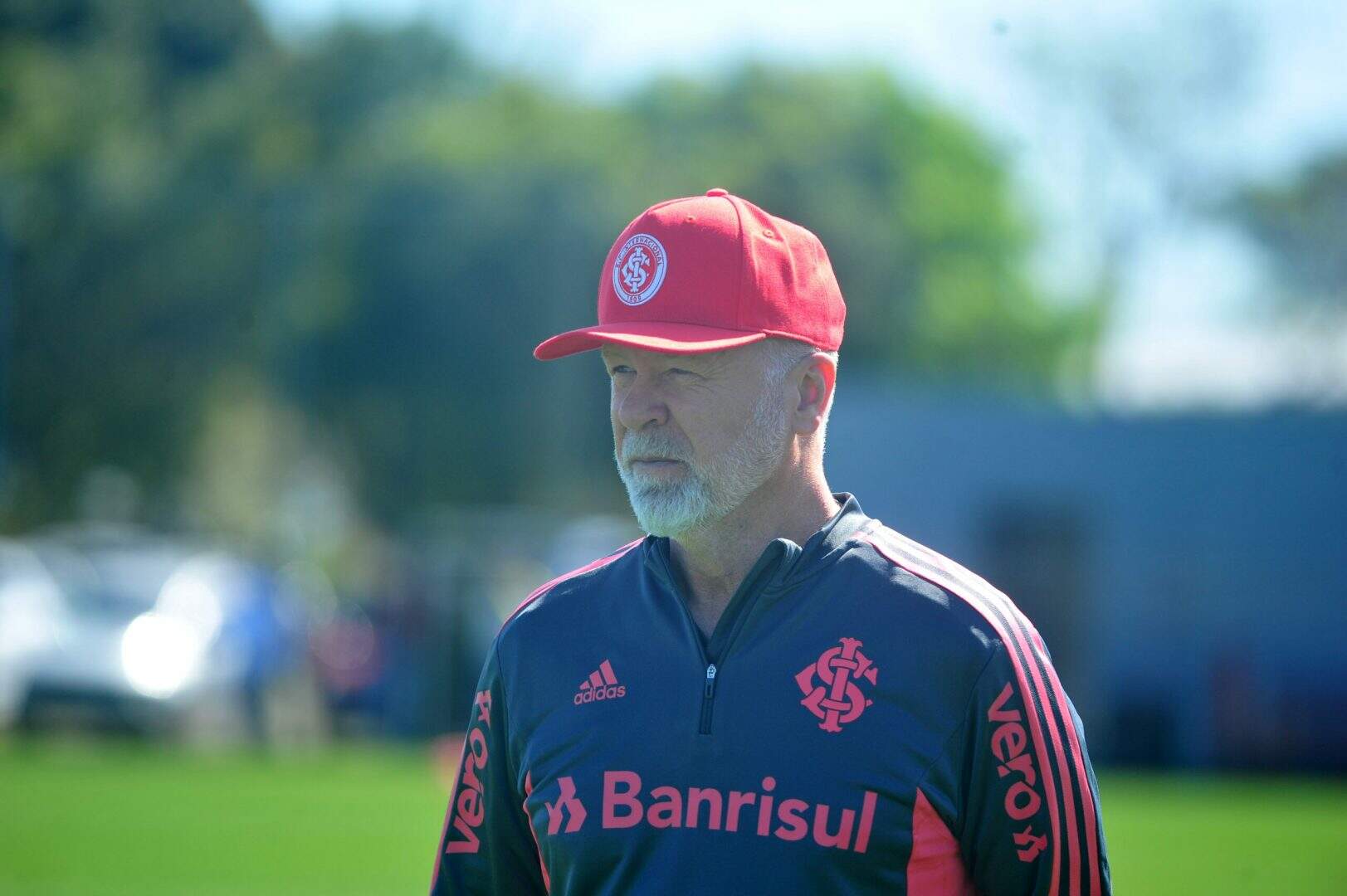 O treinador colorado dividiu o elenco em três equipes. Duas duelavam em uma parte do campo, enquanto a terceira trabalhava na outra metade situações específicas.
