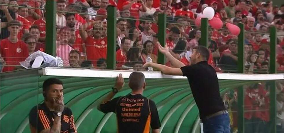 Durante o empate do Inter contra o Goiás no Brasileirão, o técnico Eduardo Coudet chamou atenção por uma cena. O treinador acabou se irritando com torcedores que estavam atrás do banco de reservas e discutiu com os colorados.