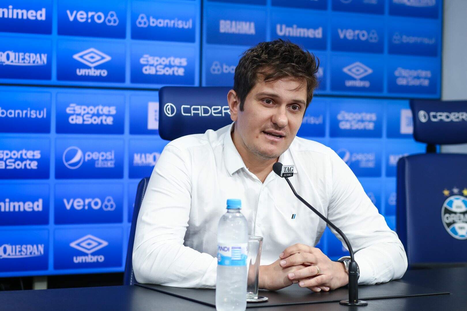 O principal assunto da entrevista foi sobre a possível renovação de contrato com o zagueiro Pedro Geromel. O vínculo entre jogador e clube se encerra em dezembro de 2023. Brum explicou que tem a intenção de manter o ídolo, mas disse que isso será discutido mais para frente.