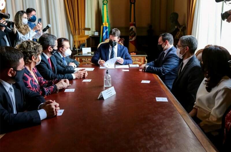 O acordo foi assinado no Palácio Piratini pelo governador Eduardo Leite, pelo presidente do TJ-RS, desembargador Voltaire de Lima Moraes, pela presidente do TRT-4, desembargadora Carmen Isabel Gonzalez, e pelo presidente do TRF-4, desembargador Ricardo Teixeira do Valle Pereira. O estoque de precatórios no RS atualmente totaliza R$ 17 bilhões.