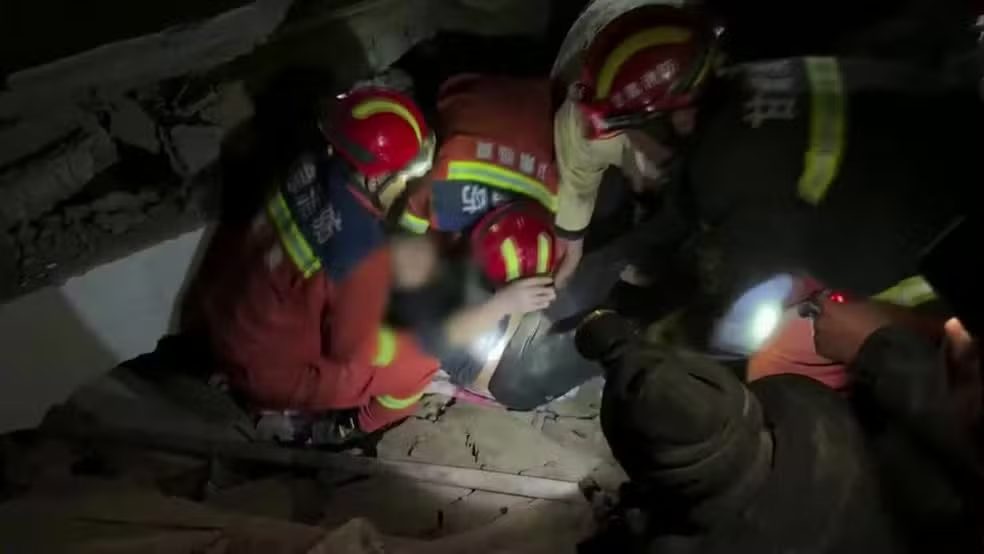 Equipes de resgate buscam por sobreviventes. (Foto: China Central Television)