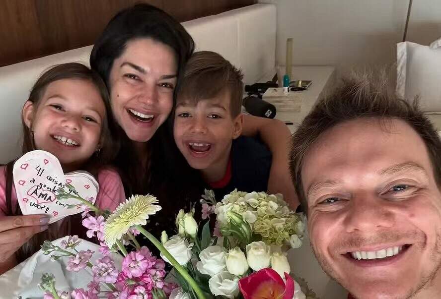 Thais Fersoza completa 41 anos neste domingo (13) e já começou o dia recebendo o carinho do marido, Michel Teló, e dos filhos, Melinda e Teodoro.