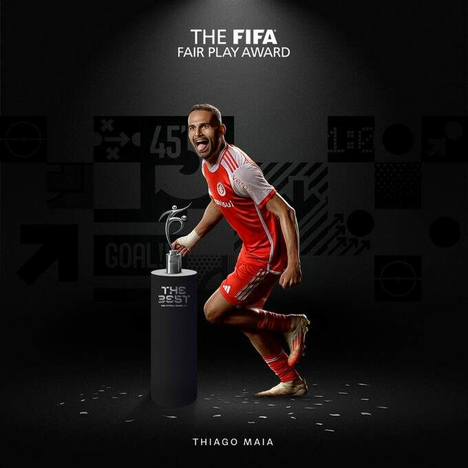 Thiago Maia, do Inter, recebeu nesta terça-feira (17) o prêmio Fair Play, da FIFA, no The Best 2024. O jogador recebeu o troféu por suas ações solidárias durante as enchentes do Rio Grande do Sul.