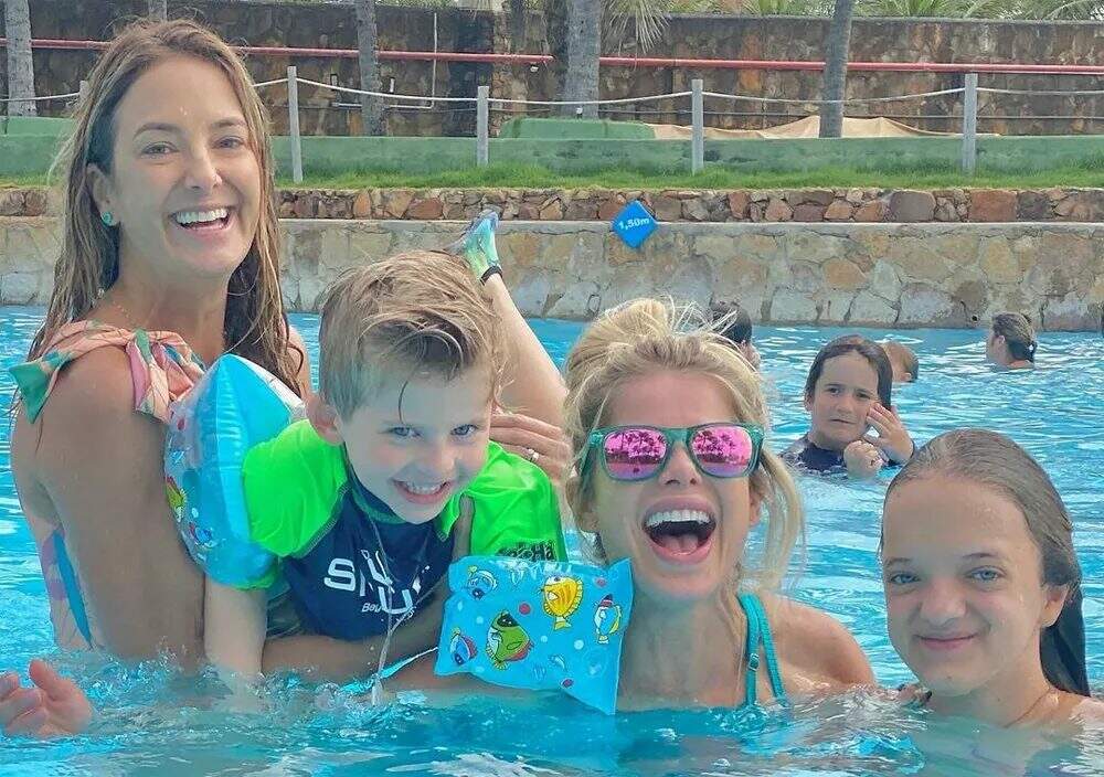 Com as apresentadoras, estavam Rafaella Justus, de 12 anos (filha de Tici com Roberto Justus), e Enrico Bacchi, de 4 anos, filho de Karina. “Dia de diversão e de matar as saudades do meu afilhado e da minha amiga”, disse Ticiane sobre o momento com Karina e Enrico.