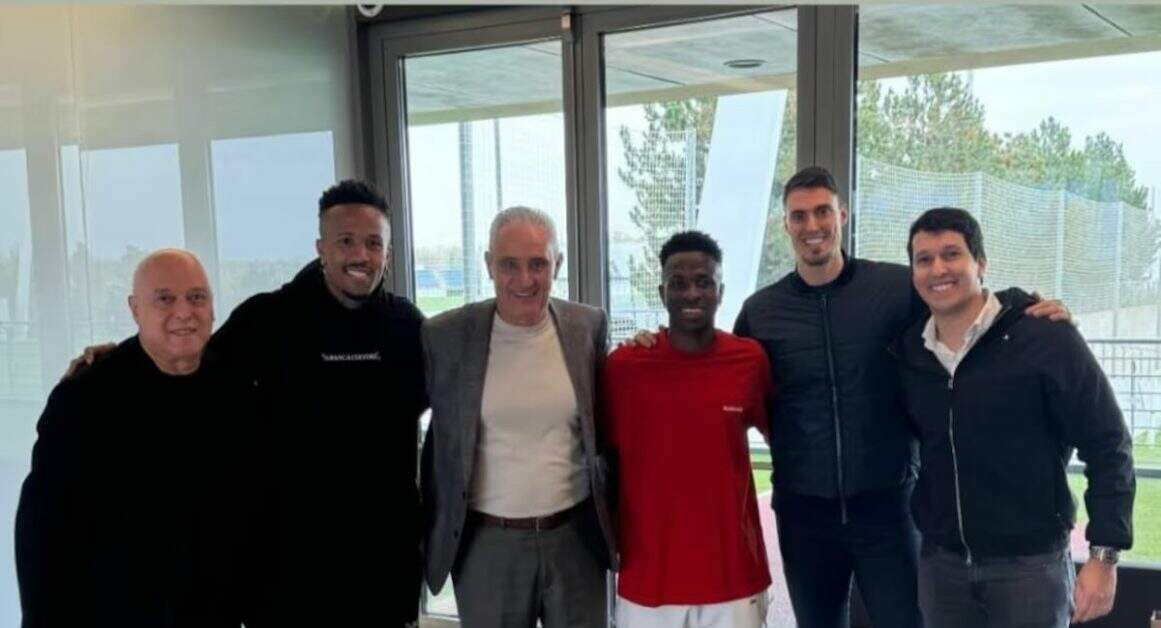 Nesta sexta-feira (8), o técnico Tite, agora sem clube, acompanhou o treino do Real Madrid e aproveitou para se encontrar e tirar uma foto com o brasileiro Vinicius Júnior. O profissional aproveitou para acompanhar os movimentos dos jogadores que trabalham sob o comando de Carlo Ancelotti.