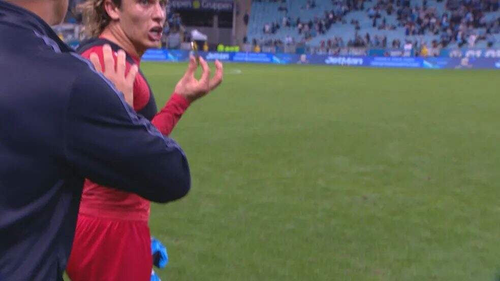 Canobbio conseguiu entregar o abridor para o quarto árbitro depois de discutir à distância com o segurança do Grêmio. O uruguaio também trocou camisa com o compatriota Luis Suárez no gramado antes de ir para os vestiários.