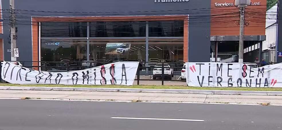 Duas faixas com dizeres críticos foram amarradas nos guardrails da avenida Padre Cacique, em frente ao estádio. Em uma delas, lia-se, “Time $em Vergonha”; na outra, “Direção Omi$$a”. As faixas foram removidas ainda pela manhã por funcionários da Empresa Pública de Transporte e Circulação (EPTC).