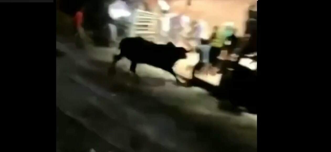 O touro foi recolhido pela equipe de apoio do rodeio e levado para a área específica dos animais.